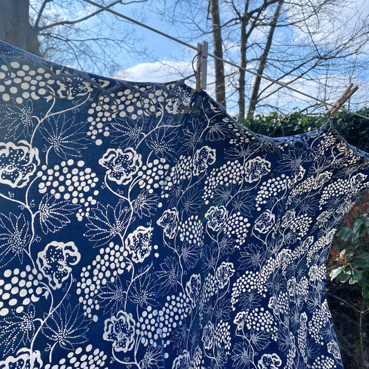 Antique indigo curtain with floral print
