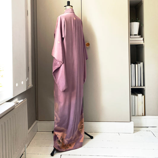 Vintage kimono with border design and contrast colour lining